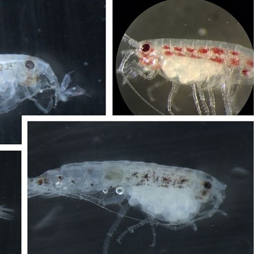 Først må vi ta en tur via noen av Norges mest berømte havforskere, Helland-Hanssen og Nansen, og en studie de gjorde på en isamfipode, Apherusa glacialis (Bilde nedenfor), som beiter på isalger mens de følger den Transpolare isdrift over Polhavet.